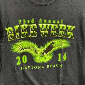 Bike Week Mens Tee Shirt Large Black Neon Green 2014 Daytona Beach Eagle