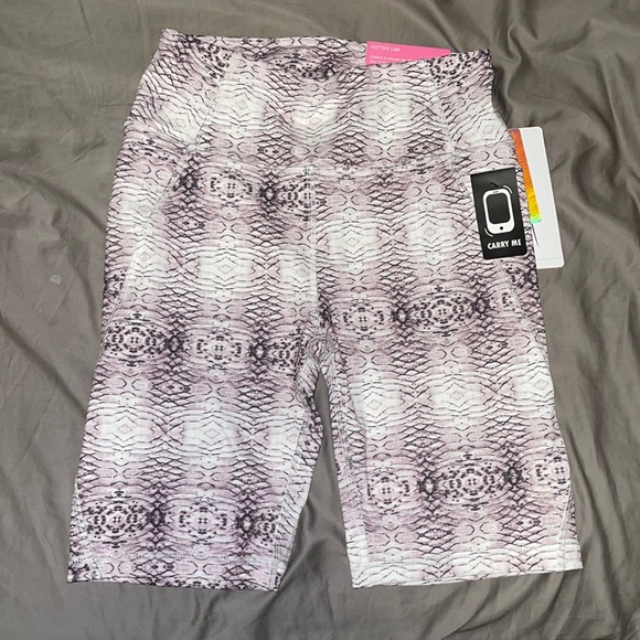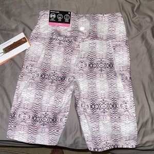 Pink snake skin biker shorts with: - phone pocket - tummy compression - slimming contour