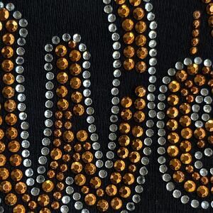 Condition: Gently worn. Rhinestones mostly intact and graphic bright. A few missing on the "W". See photos. No stains, tears, or holes were noted.