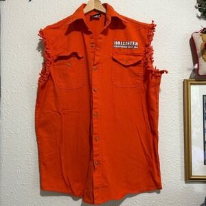 Biker Clothing Company Vest Mens XL Orange Sleeveless Motorcycle Frayed Holister