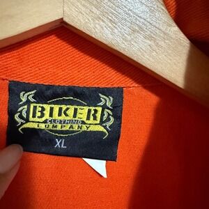 Keywords: biker vest, motorcycle vest, orange vest, sleeveless jacket, graphic vest, biker clothing company, frayed vest, xl vest, men's vest, casual vest, outerwear, retro vest, vintage vest, festival wear