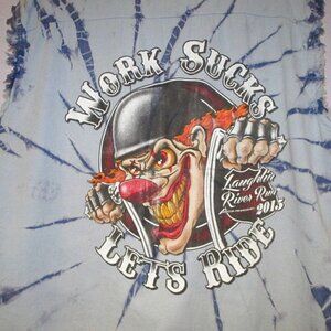 Biker DENIM Sleeveless Size XL SHIRT Button Down POCKETS Let's Ride RIVER RUN