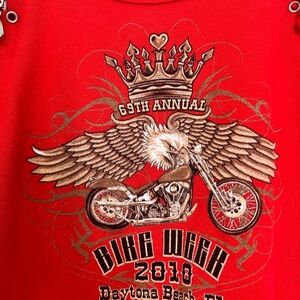 Biker Design - 2010 Bike Week Daytona Beach Florida Red Zipper Long Sleeve Top Size Small