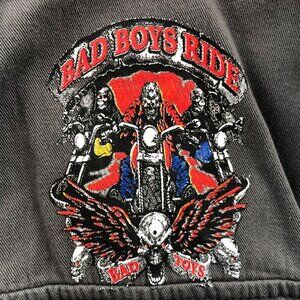 This Biker Design vest features bold, colorful graphics that celebrate the spirit of the road. Made of 100% cotton, the vest provides comfort and durability. The distressed edges add a rugged touch, making it ideal for those who appreciate a lived-in look. Embellished with patches, it’s a striking piece for motorcycle enthusiasts.