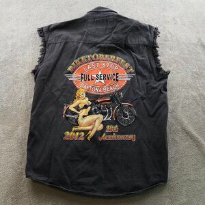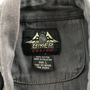 Biker Design Mens Shirt Large Graphic Prinnt Top Gray Sleeveless Button Up Y2K