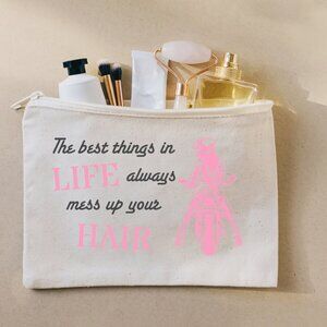 Cute canvas bag! Available in hot pink, orange, red, purple, and soft pink! Perfect to use as a makeup bag, or a first aid bag, or just a small bag for anything. Approx 5"x7" size. Machine washable!