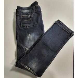Biker Jeans Slim Fit Distressed Denim Dark Wash Moto Style Pants