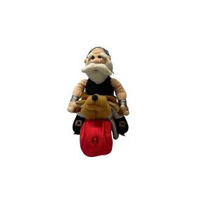 Biker Santa Claus Riding a Reindeer Motorcycle Christmas Animated Plush Works