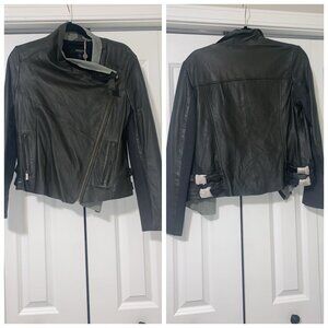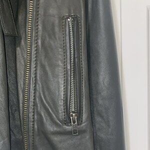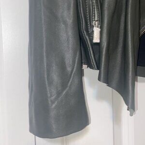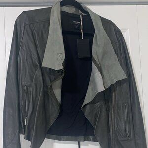 Beautiful, unique draped front. Fitted for a flattering silhouette. Buttery soft goat leather.