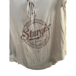 Bikero Pride White Cold Shoulder Top Sturgis Bling Design Women's Size L
