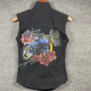 Bikers Edge Button Up Motorcycle Vest Women's XS Black Sleeveless Floral Biker