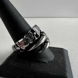 Bikers Stainless Steel Skull & Claw Ring Size 11, Gothic Halloween Jewelry