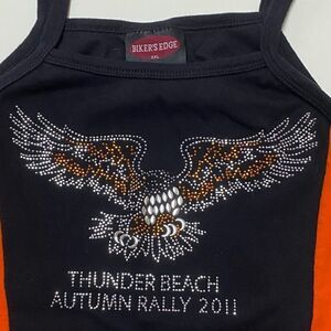 Bikers Edge Women’s Thunder Beach Embellished Black and Orange Tank Top