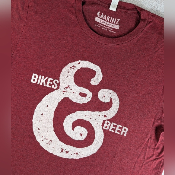 Casual maroon tee with bold 'Bikes & Beer' print. Perfect for relaxed outings.