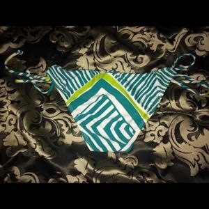 Blue, green, & white. Adjustable strings. Top & bottom size extra small.