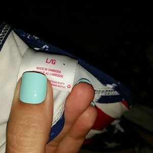 Cute flag bikini with 2 bottom options! One is a little higher waisted and is a size medium the other is a traditional bikini bottom and is size large! The top is an awesome push up padded top and is also size large! Only worn about 4 times last summer around the 4th! Great condition!