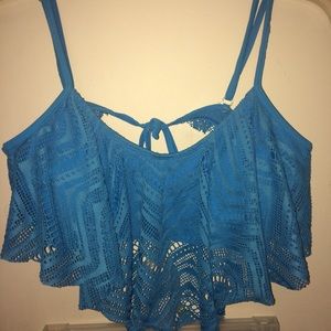 This is a nice pretty blue Bikini. It has a cute little pattern to it. The top has been worn a few times but the bottoms have never been worn.