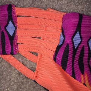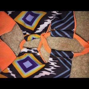 This bikini no is sooo cute and trendy but too small for me. I've never worn it bought brand new just doesn't fit. I'm a DD and it would fit from an A- C it's adjustable in the front to choose if you want to show more or less cleavage. Shoot me an offer! Will consider trades! Both pieces included. NOT VS BRAND tagged for exposure.