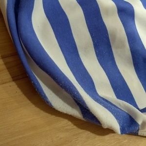 This is a cute white, blue and coral bikini. It doesn't have any tags so unsure of the brand but I think we bought it at Target. It has some wear in the buns area but still looks adorable on. I'm a size xs/sm in juniors/women's and it fits. No pads in bust.