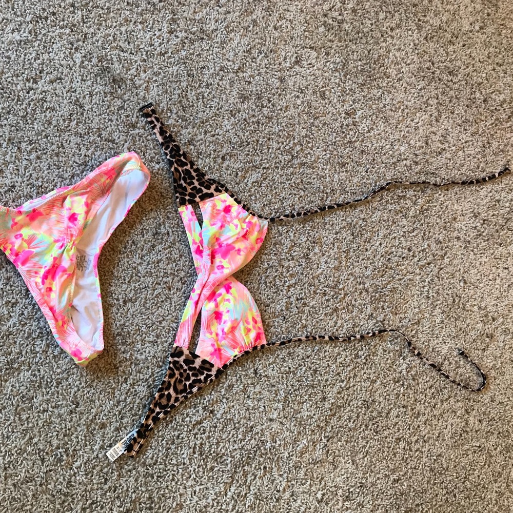 PINK floral and leopard swim suit. Bottoms are medium top is a small