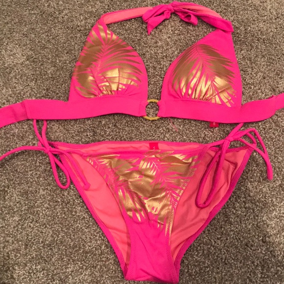 Push up Pink bikini with padding in the top. Gold design and new without tags.