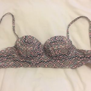 Salmón, navy blue, turquoise and gold bikini. Both pieces size XS. Bottom has tassels and scrunch butt. The top is padded. Worn once.