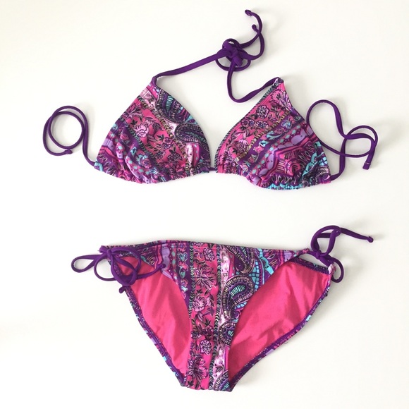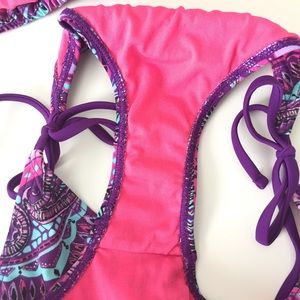 Pink and purple bikini 👙 Top and bottom are size medium. Worn once, washed and clean!!! Strings intact, like new condition. Smoke free home.