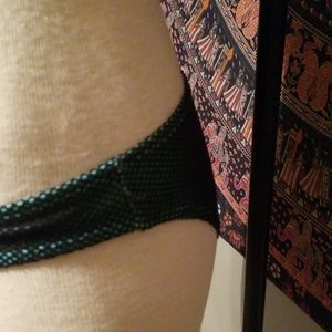 Teal and black mesh material. Like new