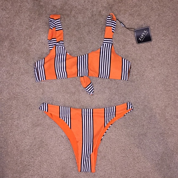 Medium Zaful bikini—just got it brand new never warn. Top is way too small on me. Great quality. Bright colors. Cheeky bottoms. Adjustable top!