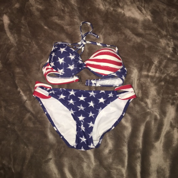 Super cute American flag bikini! Top is a small bottoms are medium. Just purchased off poshmark but doesn’t fit!:(