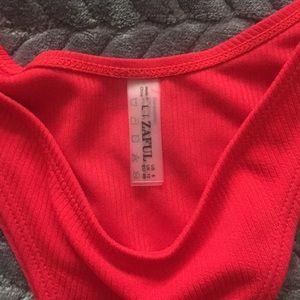 Red Worn once Color still very vibrant didn’t take into chlorine Runs small