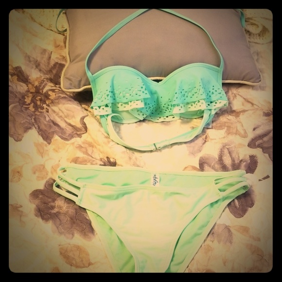Cute green and blue bikini. Top is a small bottoms are a large. Well sell separately if you only want one or the other