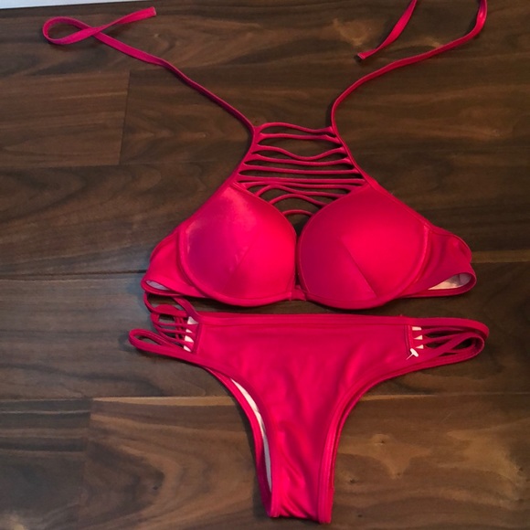 Fuchsia bikini with multiple straps