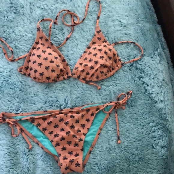 NWOT peach tie bikini with black palm trees. Both top and bottom lined. Top has removable pads.