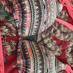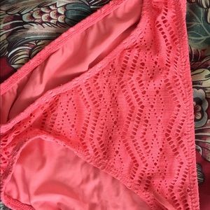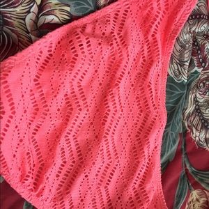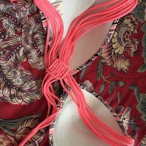 Soft cups, strappy top. Large top, medium bottoms, coral