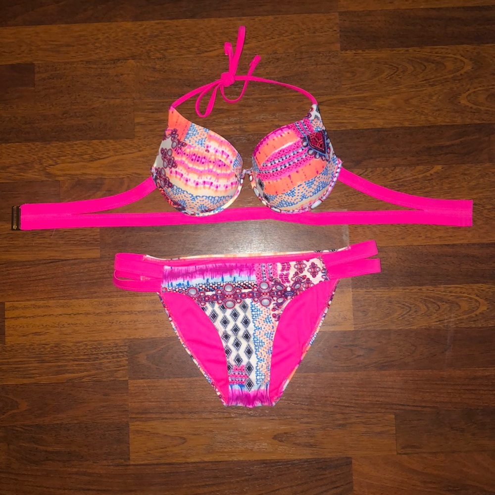No tags - fits 34-36 chest, B/C cup Bottoms are medium 2 piece bikini - elastic bands, underwire in top