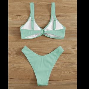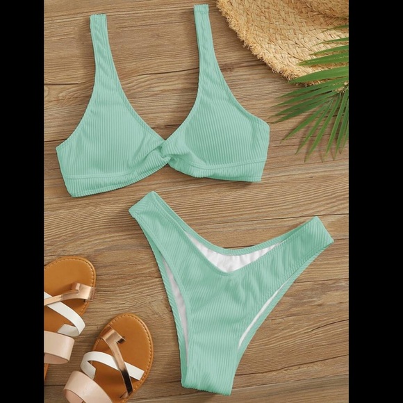 Rib Twist Front High Cut Bikini Swimsuit Set