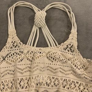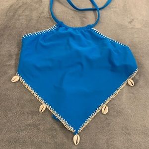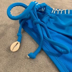 Blue and ivory bikini 👙 with seashells missing only one on the side of the strings on the underwear 🩲as you can see in the pic