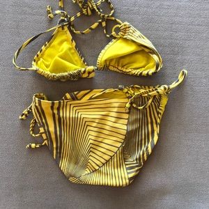 Yellow and grey bikini with cute details on the ties . In good condition