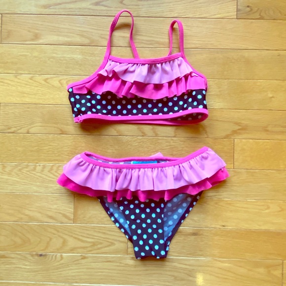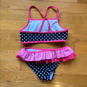 Bikini, Black with white polka dots and light and dark pink ruffles