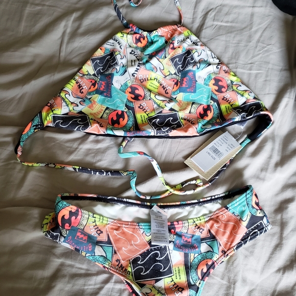 Top is LARGE and bottom is MEDIUM. Bottom with no tag but never been worn, only tried in.