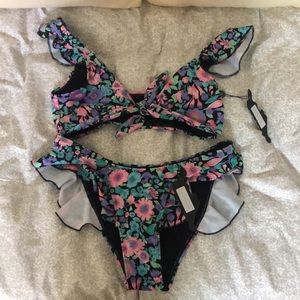 Bottom (1st and 3rd pics) and top (2nd and 3rd pics) were bought separately. Only tried the top not bottom. Bottom did not come with a liner. Tags on. Bottom size M and top is size L.