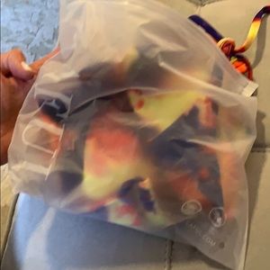 Size M. Red purple yellow tye die. Removable padding in top. Triangle string top. String tie bottoms. NWTs