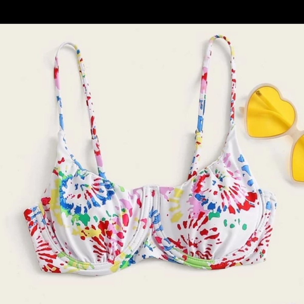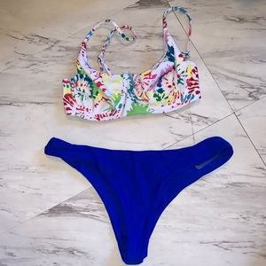 Tye dye top and cheeky royal blue bottoms. NEVER WORN!!!