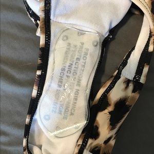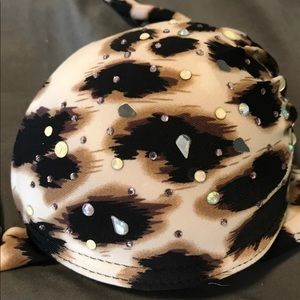 Cheetah gemmed bikini. Some gems missing as pictured Bottoms have lining in them still. Size small for both! Top is underwire push up fits a 32B. Amazon.