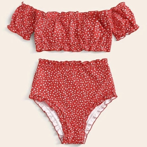 Brand New Floral Frill Trim Bardot Bikini