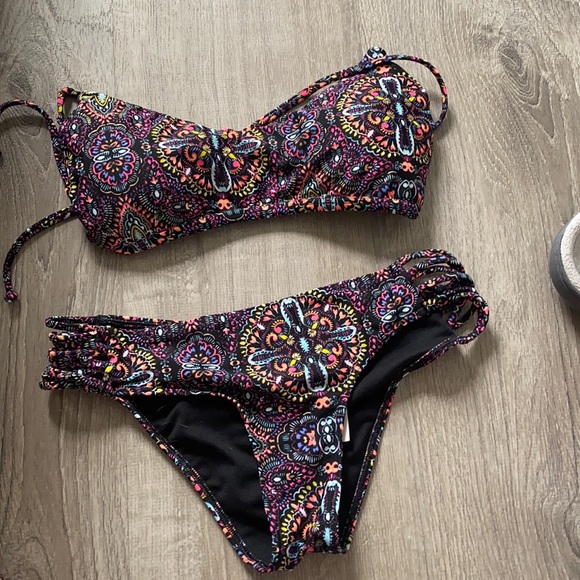 Medium top small bottom patterned bikini, like new
