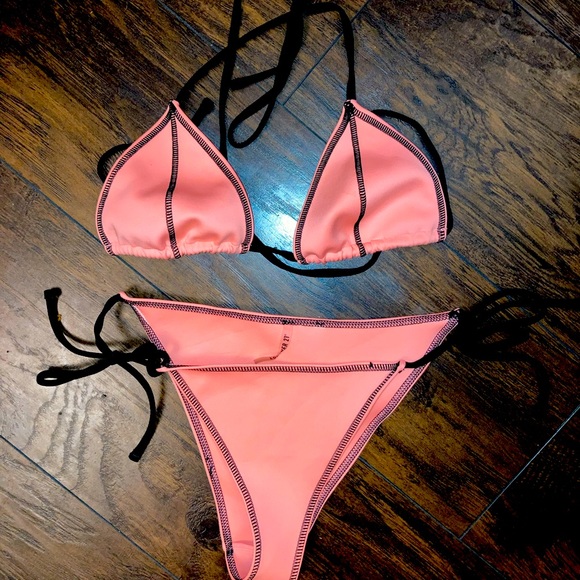 Forever 21 high waisted bathing suit only worn to try on. Isn’t my style my loss you gain! It’s like a pink peachy color