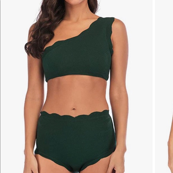 High waist one shoulder hunter green bikini- nwot