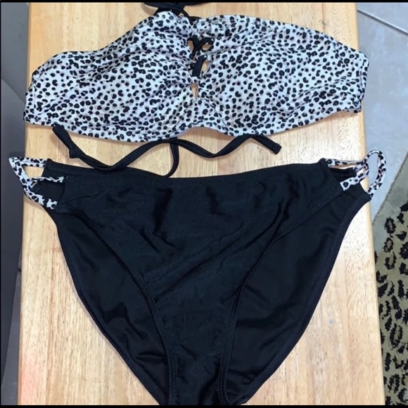 Leopard print bikini in good condition. Bottoms are a large, top is a medium